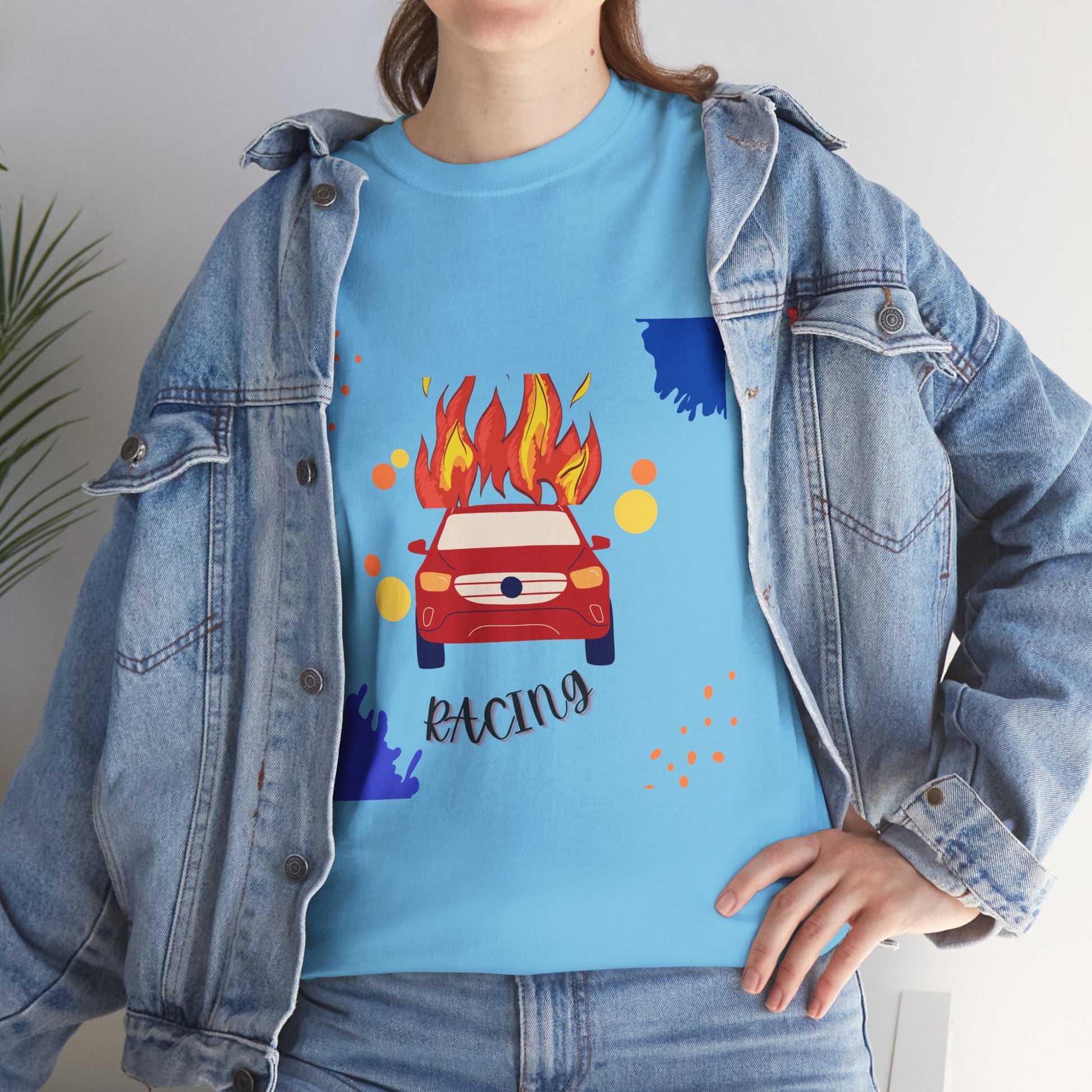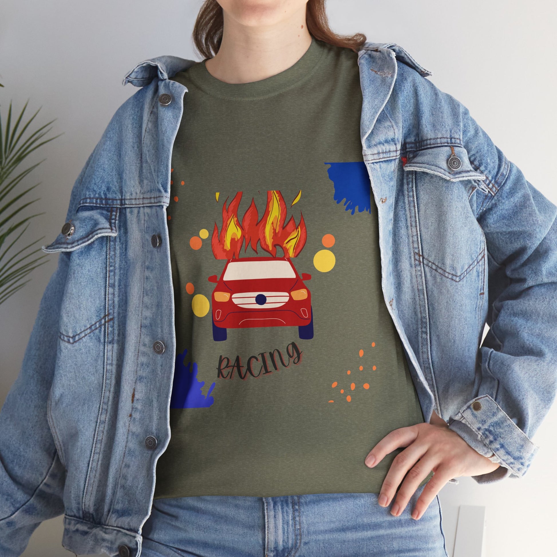 تي شيرت سباقات جرافيكي للجنسين - تي شيرت سباقات سيارات من القطن الثقيل للرجال والنساء، تي شيرت كاجوال لمشجعي رياضة السيارات، بأكمام قصيرة، مقاسات S-5XL