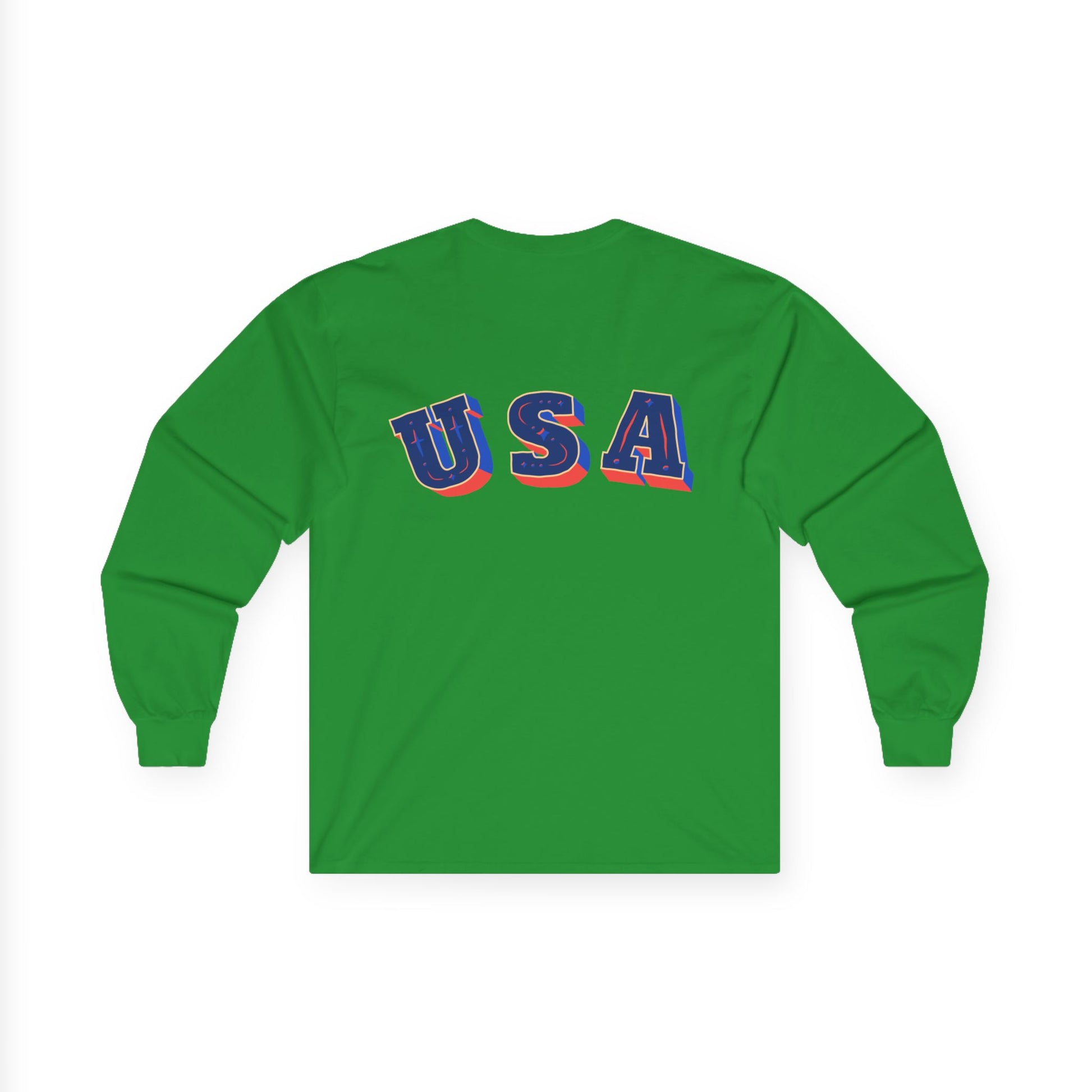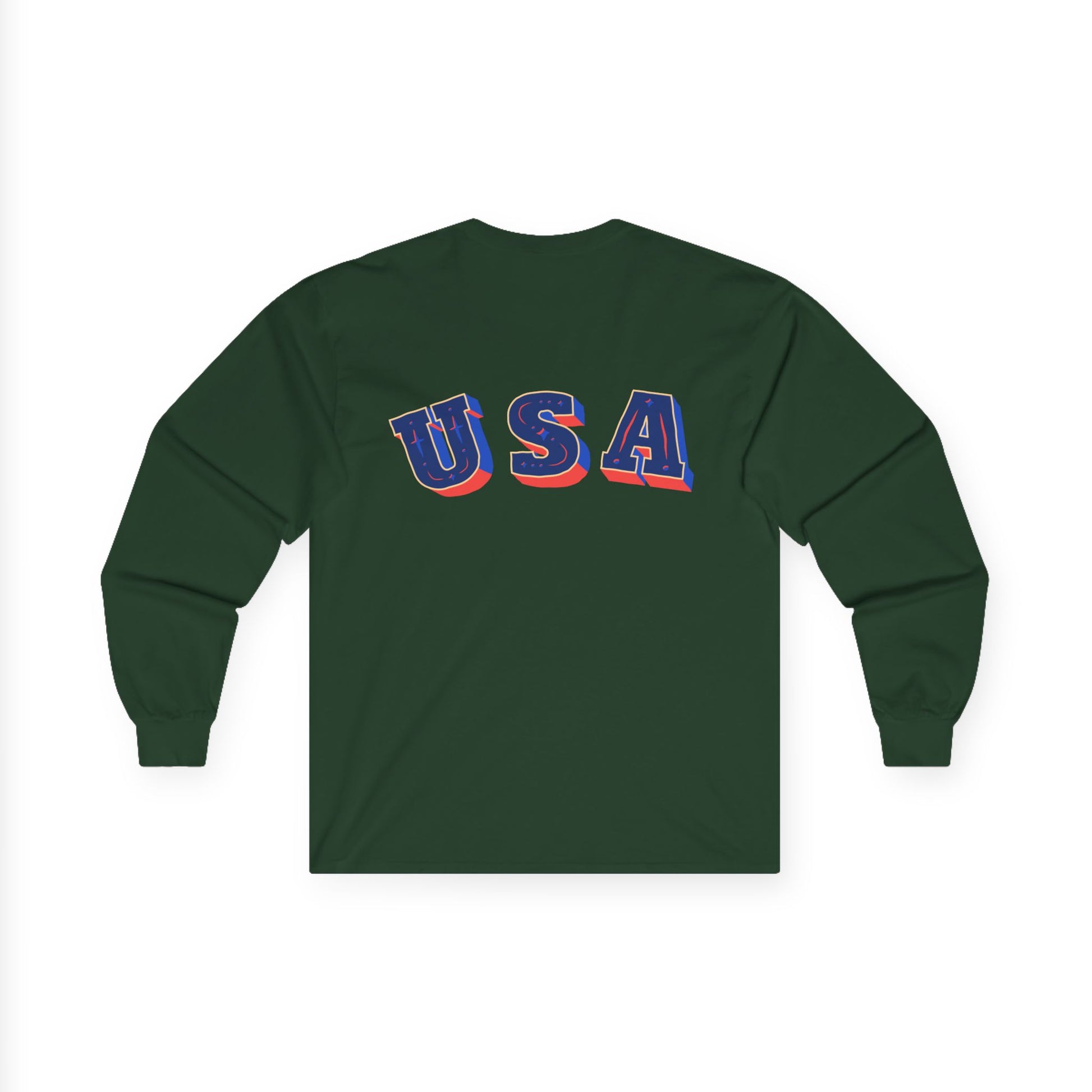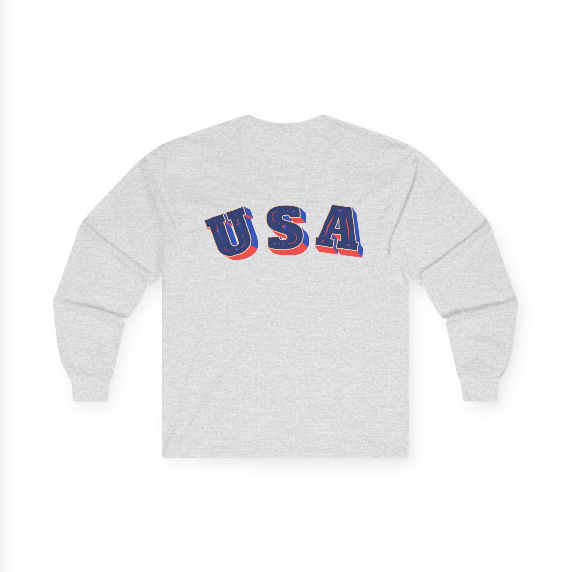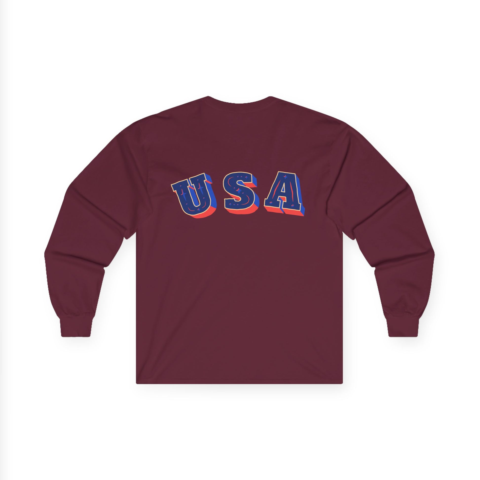 Introducing a stylish Unisex Ultra Cotton Long Sleeve Tee that radiates patriotism. Crafted from eco-friendly cotton, this tee boasts a thicker vintage feel that’s perfect for any casual occasion. Its unique design features vivid American flag graphics on the front and a bold ‘USA’ print on the back, making it a fantastic choice for celebrating Independence Day, Memorial Day, or anytime you want to show your national pride.