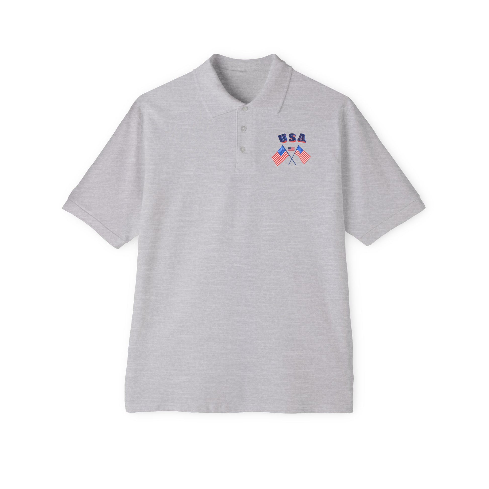 Patriotic men’s polo shirt with USA flag design. Cotton piqué short sleeve collared shirt, S–3XL. Perfect for 4th of July, BBQs, Father’s Day gifts.