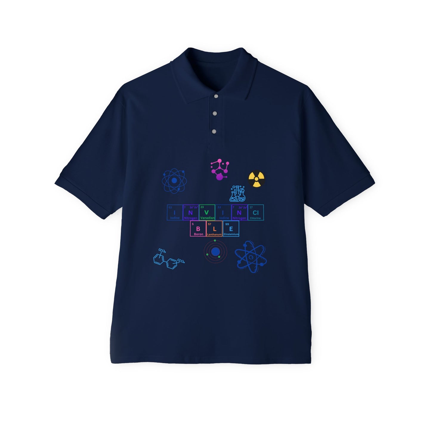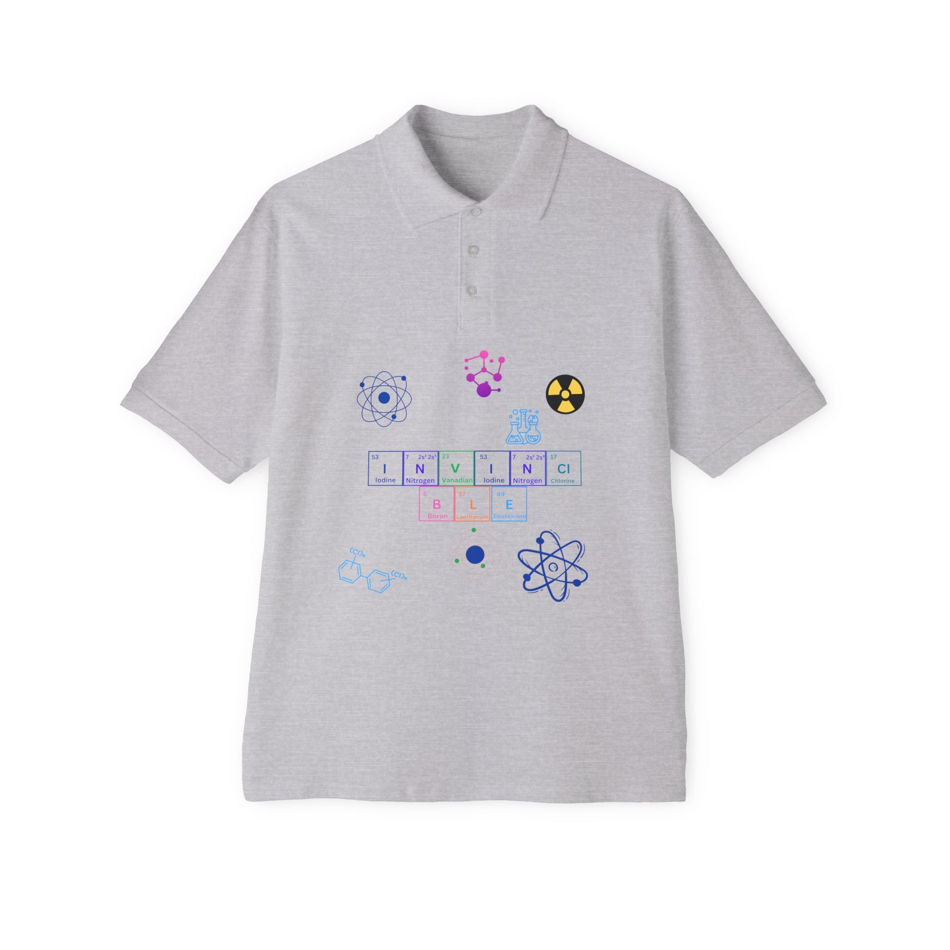 Invincible Science Men’s Piqué Polo - Stylish and Comfortable for STEM Enthusiasts. This polo exudes a polished and professional vibe, perfect for casual office days or weekend outings. Ideal for STEM professionals, students, and enthusiasts. Relevant for Father's Day, birthdays, and casual gatherings.