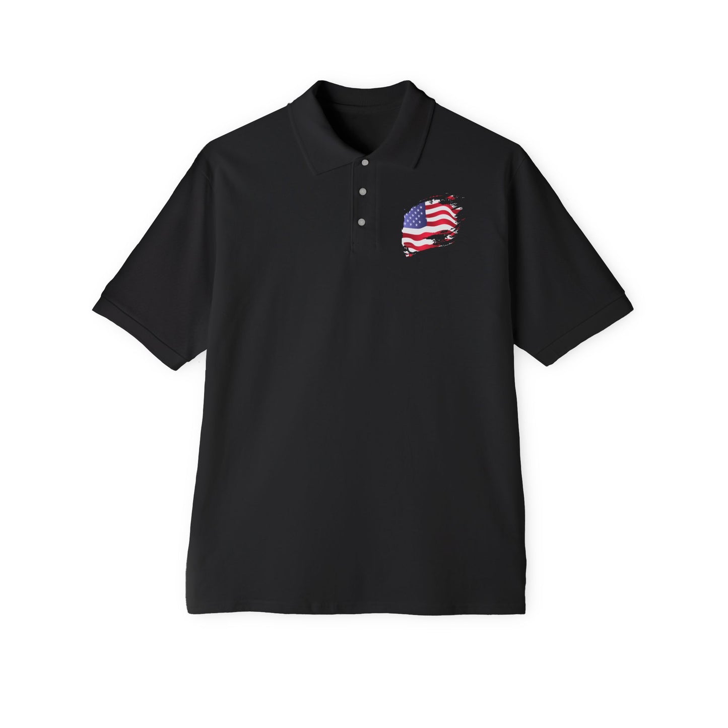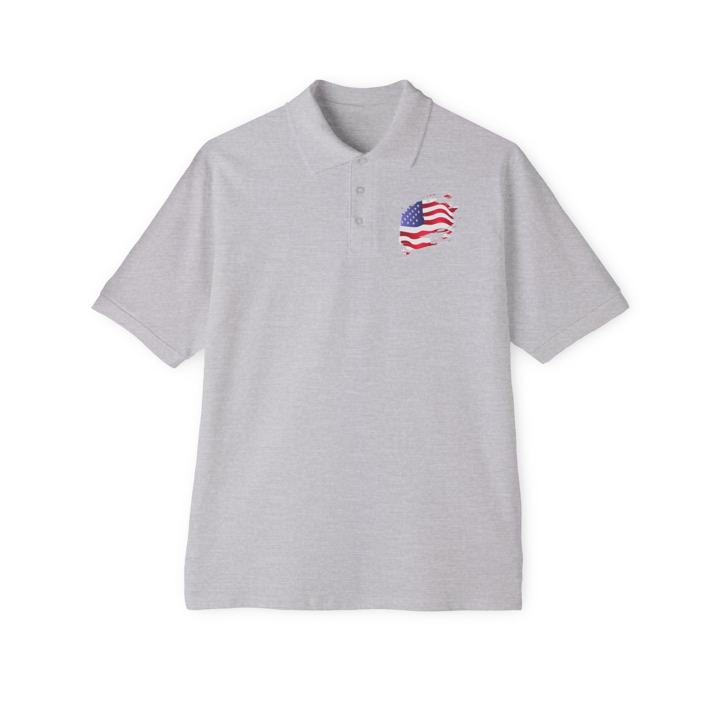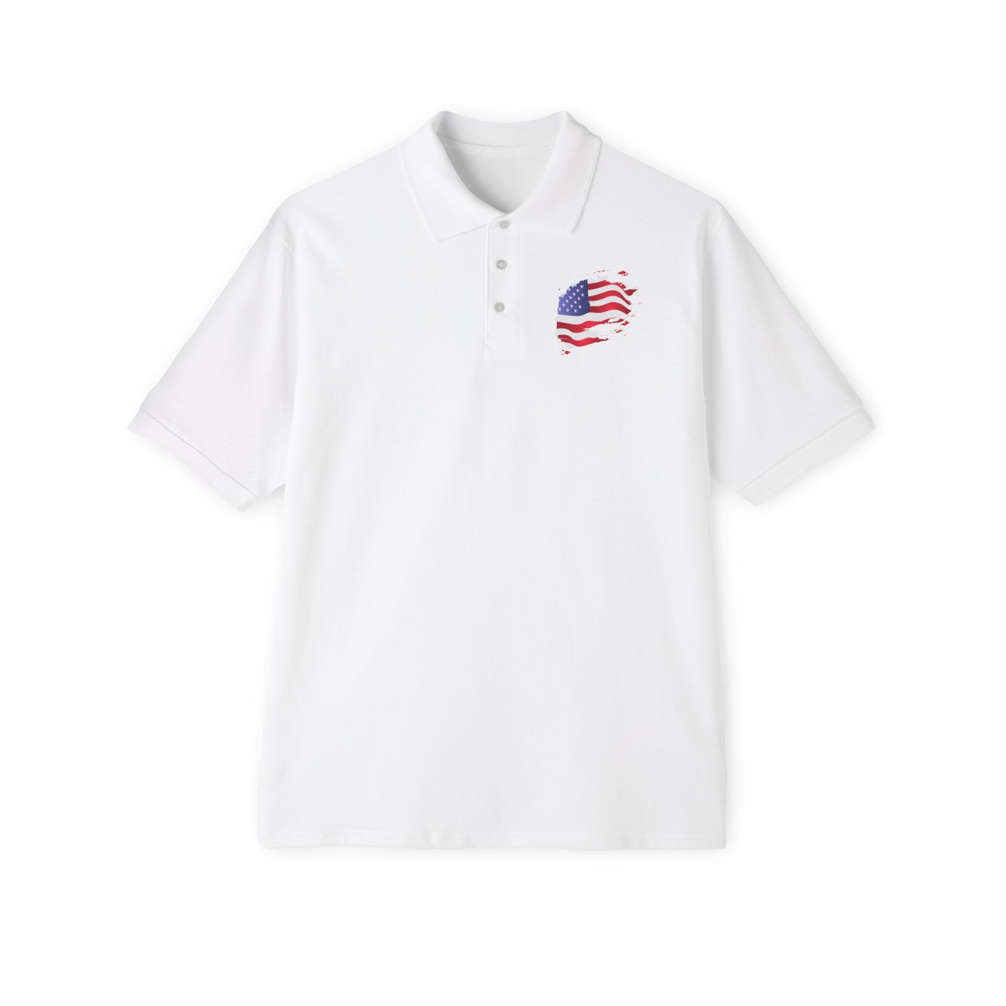 Classic Men's Piqué Polo with American Flag Emblem, perfect for casual comfort at any occasion. This versatile polo shirt is suitable for patriotic holidays, BBQs, and everyday wear. Ideal for men who appreciate timeless style and quality.