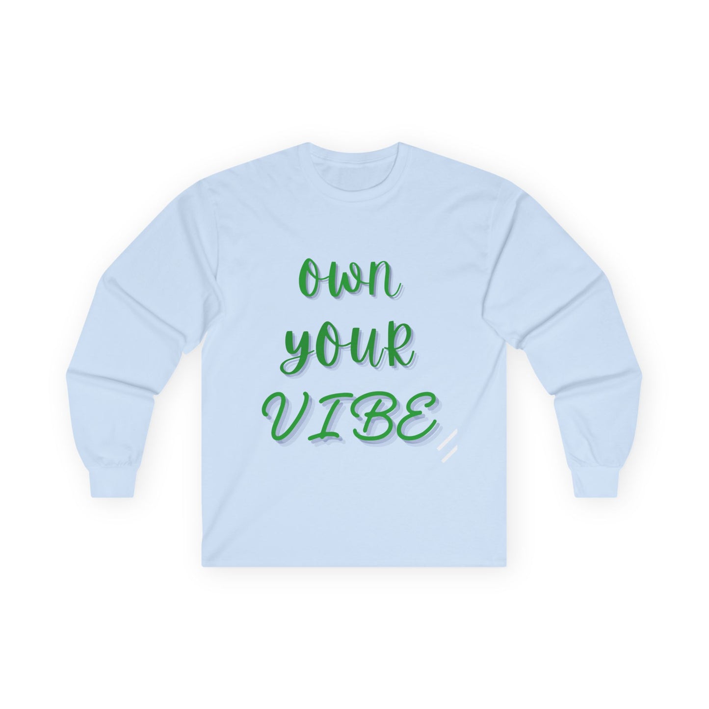 This Own Your Vibe Long Sleeve Tee is a unisex cotton shirt designed to radiate positive energy. Perfect for those looking to embrace their unique vibe and spread positivity in their daily lives. Ideal for adults who appreciate environmentally-friendly materials and a thicker vintage feel. Suitable for everyday wear or as a thoughtful gift for birthdays, holidays, and special occasions.