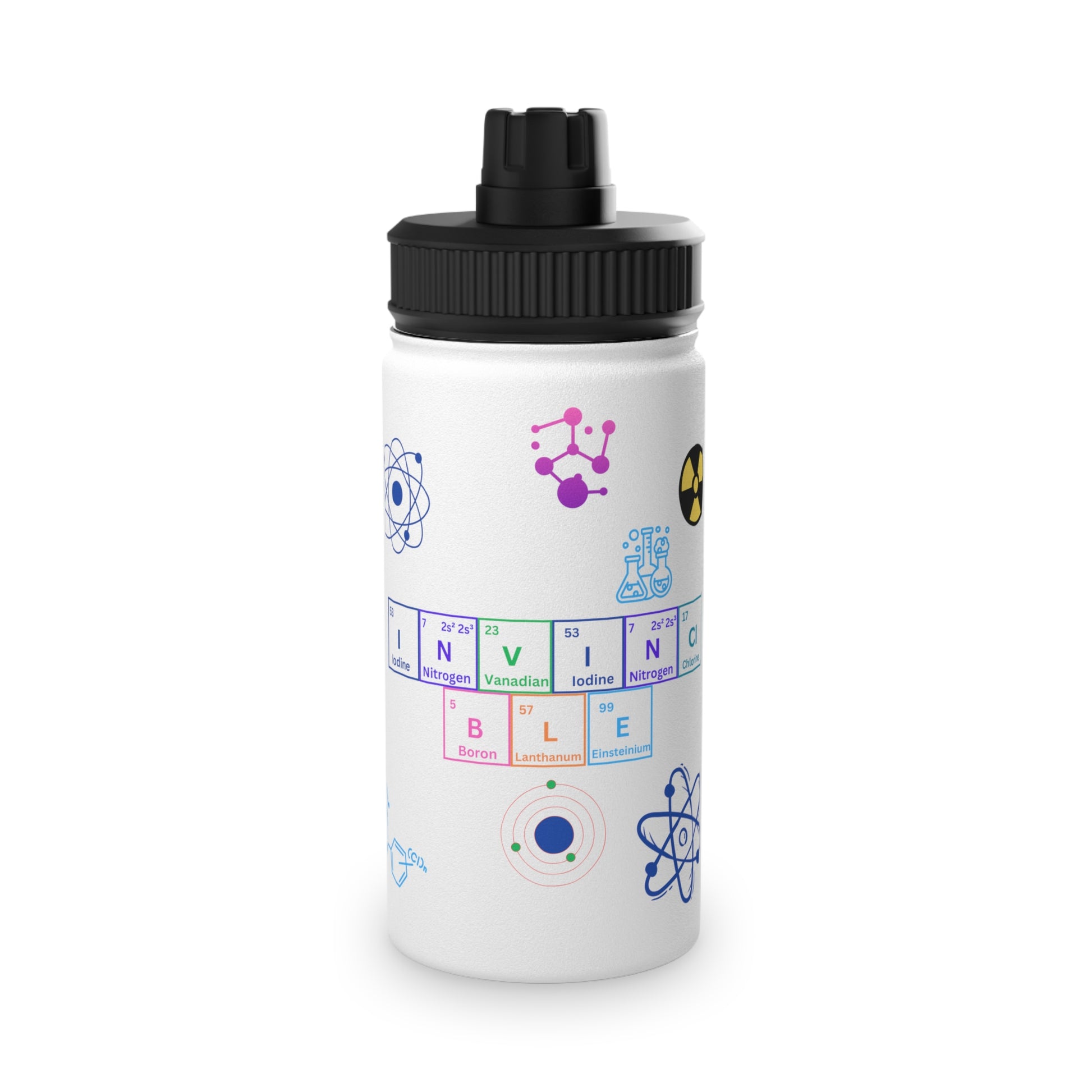 Science Themed Stainless Steel Water Bottle with Sports Lid - Perfect for Students and Outdoor Activities. This water bottle is great for science enthusiasts, students, and those who enjoy outdoor activities. It can keep drinks warm for up to 12 hours and cold for up to 24 hours.