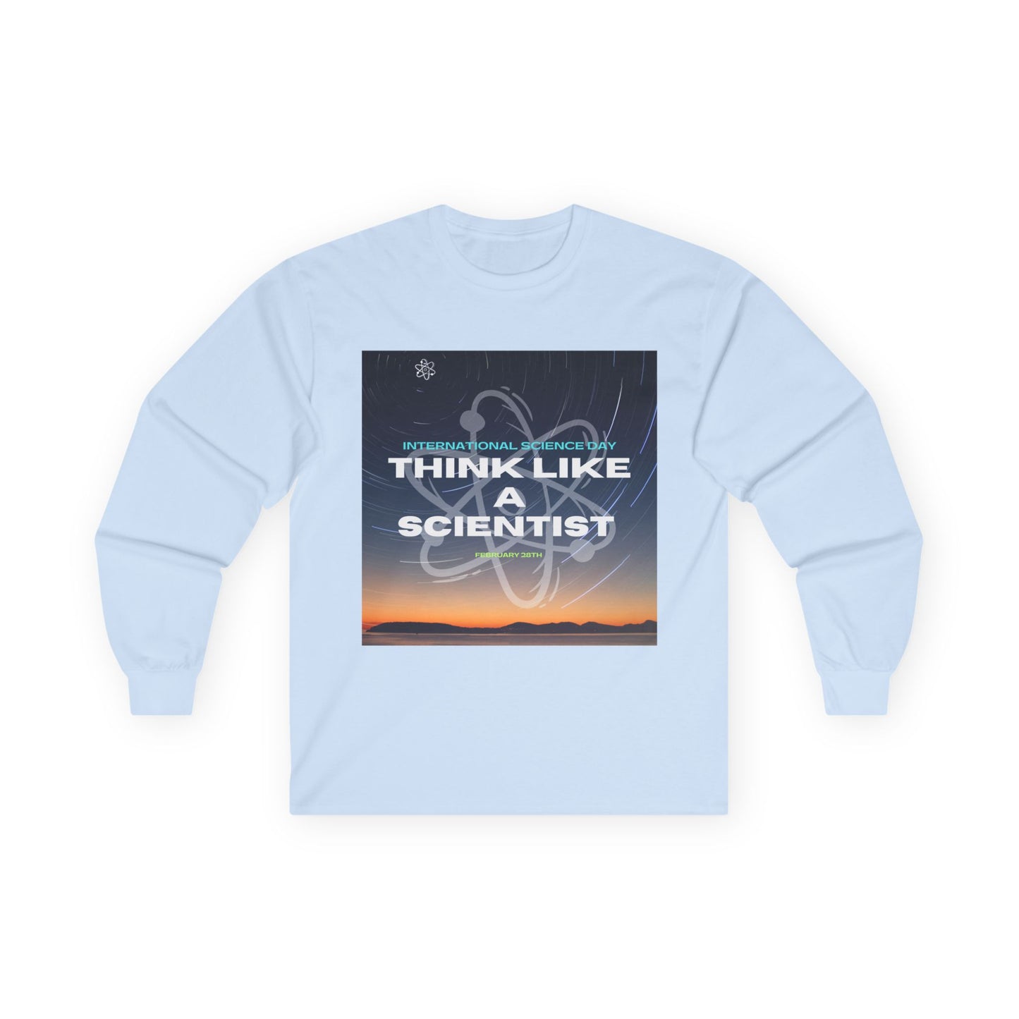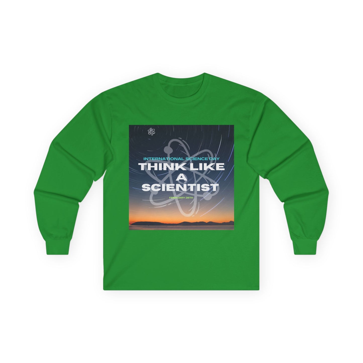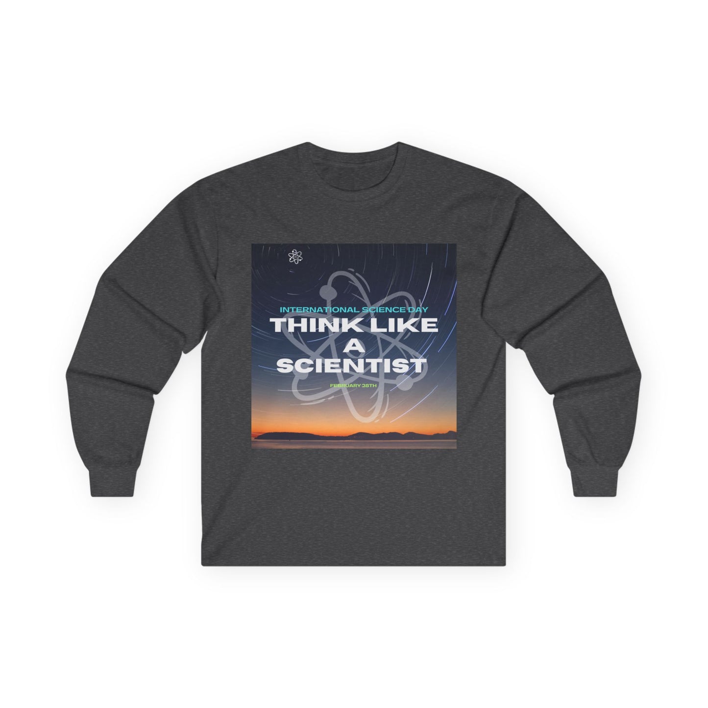 Think Like a Scientist Long Sleeve Tee - Unisex Ultra Cotton Shirt for Science Lovers. This long sleeve tee gives a vintage feel and is perfect for those who love science and want to showcase their passion. It is ideal for adults who enjoy unique, science-themed clothing. Relevant for holidays like National Science Day and occasions like science fairs.