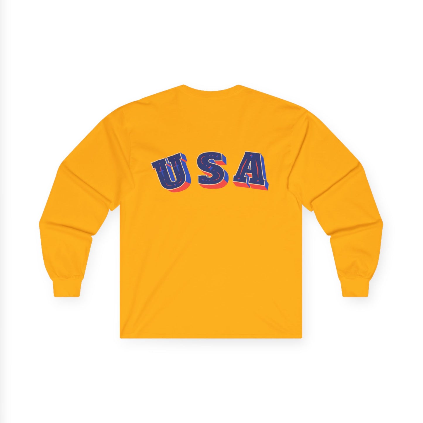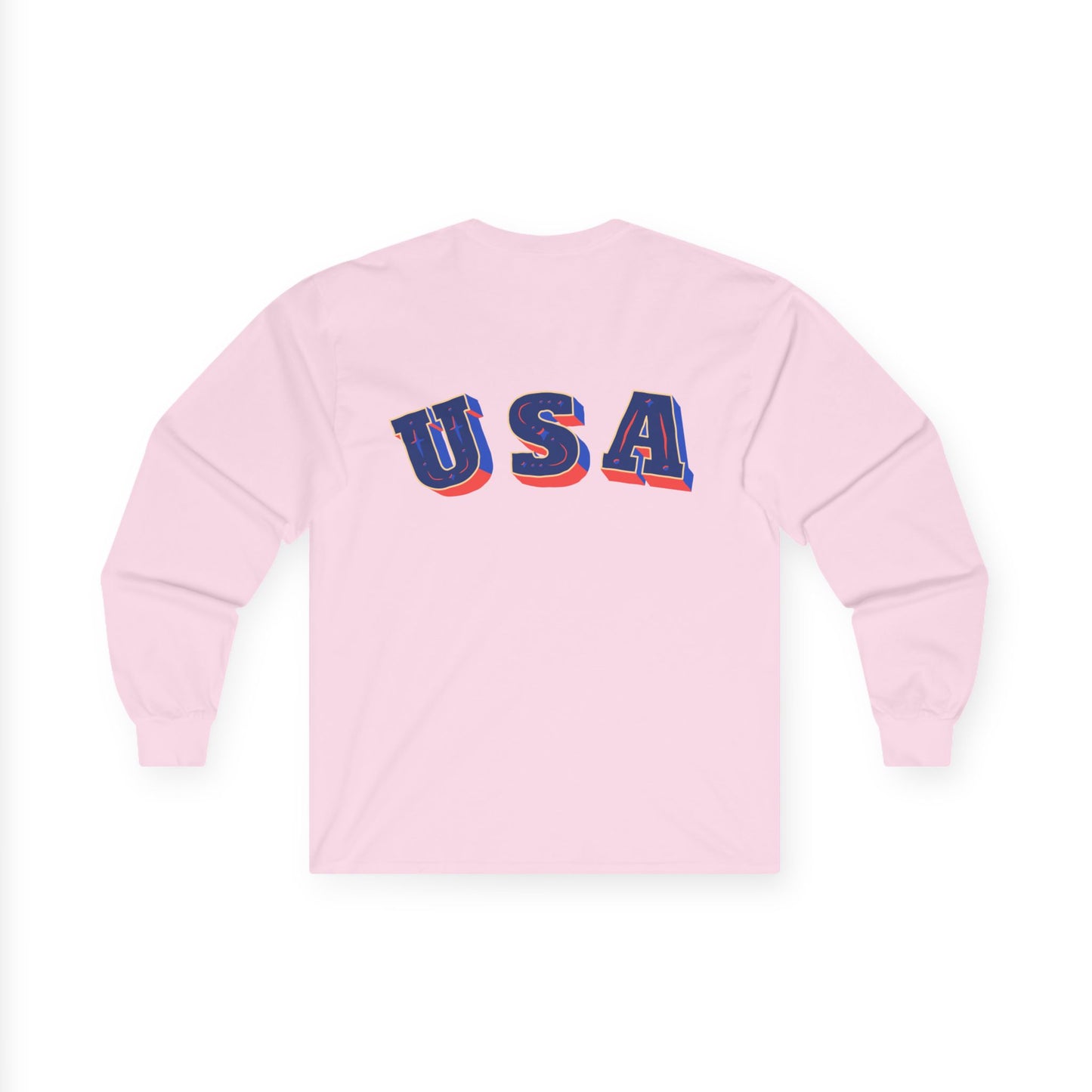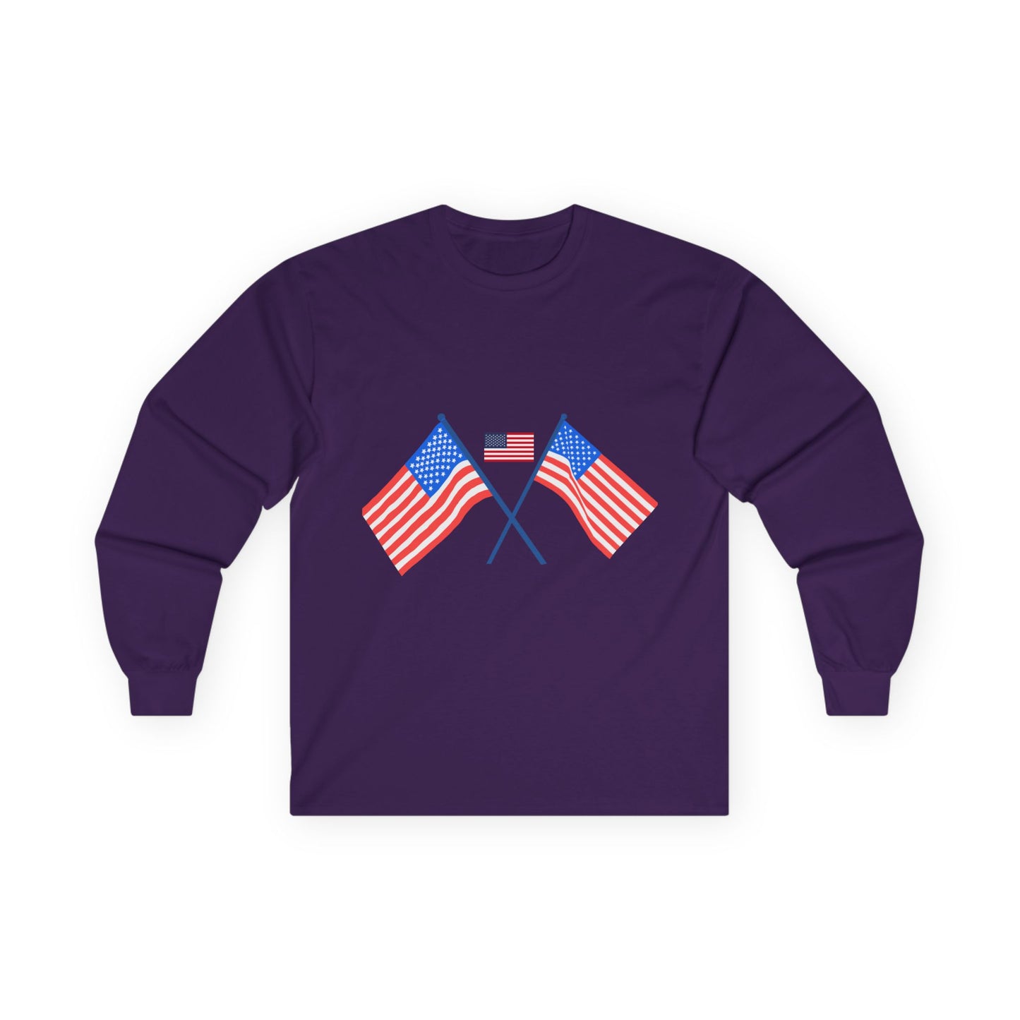 This patriotic women's Long Sleeve Tee with a USA Flag design exudes a sense of national pride and patriotism. Perfect for Fourth of July celebrations, Memorial Day, Veterans Day, and everyday wear for those who want to show their love for the USA. The ultra cotton fabric provides a thicker vintage feel, while the ribbed knit collar and shoulder tape offer added durability and comfort. Ideal for adults looking for a stylish and patriotic wardrobe staple.